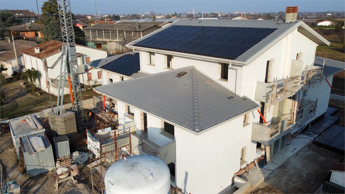 Edificio ad alto risparmio energetico: riscaldamento a pavimento, cappotto da 10 cm e impianto fotovoltaico da 5 KW, per ridurre i consumi e le spese di gestione.