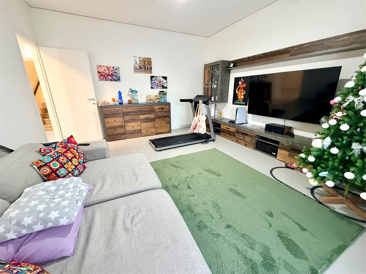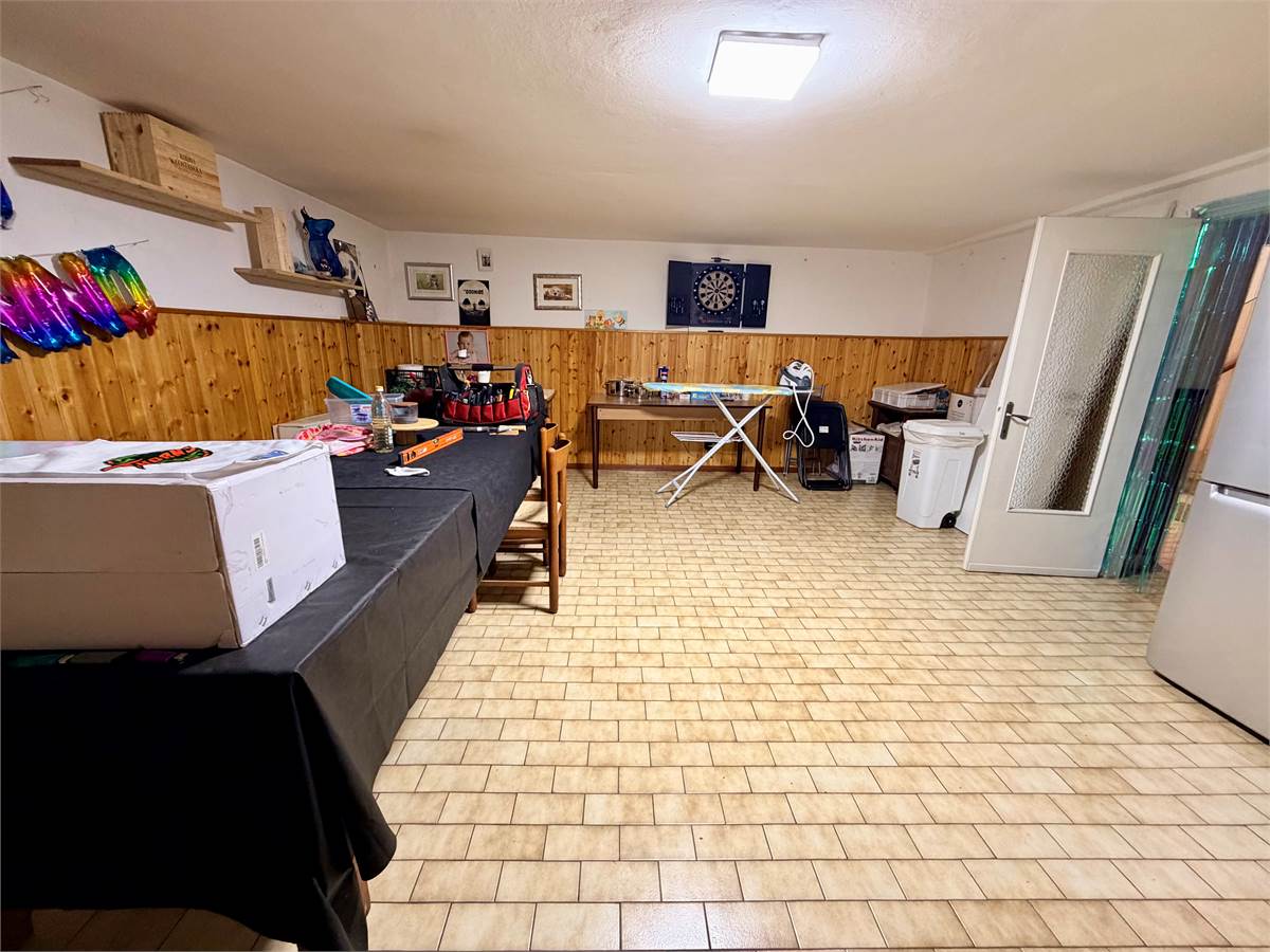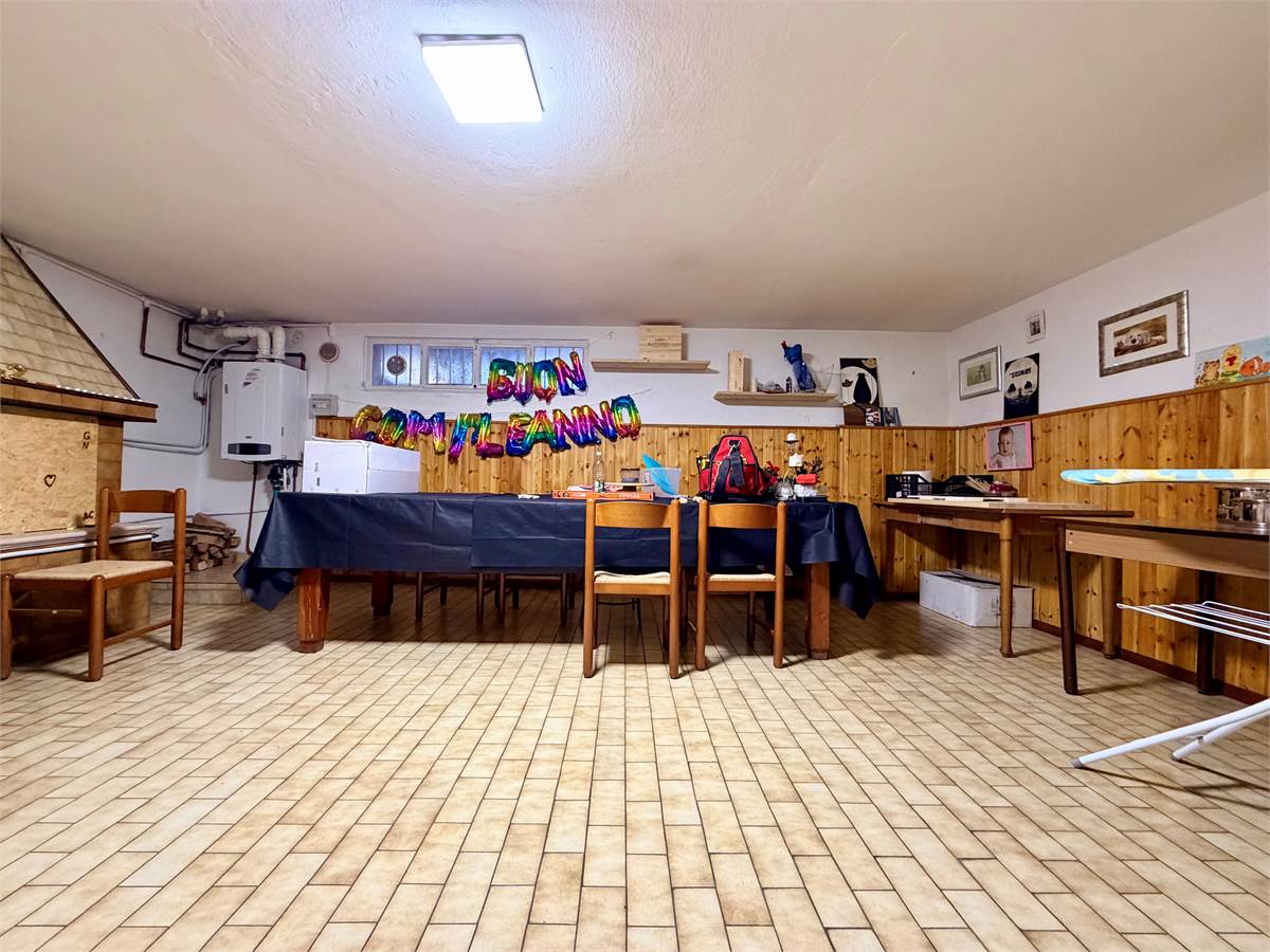 Scendendo al piano seminterrato si sviluppa una grande taverna con camino, ambiente perfetto come sala hobby o area per cene in compagnia. Completano il piano un ulteriore bagno finestrato, un ripostiglio e il garage collegato direttamente all’abitazione.