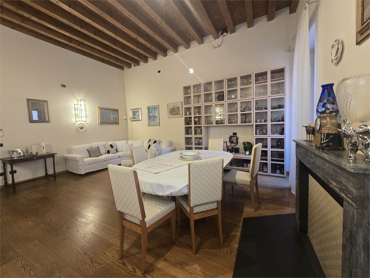 Luminoso e signorile appartamento quadrilocale al piano nobile di un palazzo storico in vendita nel quartiere Filippini, posizionato in una zona riservata e tranquilla. Composto da ingresso con ampio salone con camino, cucina separata, disimpegno, tre camere da letto di cui una matrimoniale con un bellissimo camino, bagno padronale e cabina armadio, altro bagno finestrato, ripostiglio e ampia cantina al piano seminterrato. E' inoltre completo di un comodo garage privato con lavanderia annessa. L'immobile si trova vicino a tutti i servizi essenziali come supermercati, scuole e mezzi pubblici, l'appartamento vanta finiture di pregio e ampi spazi ben distribuiti. Ideale per chi cerca una soluzione elegante e confortevole in una zona residenziale di prestigio.