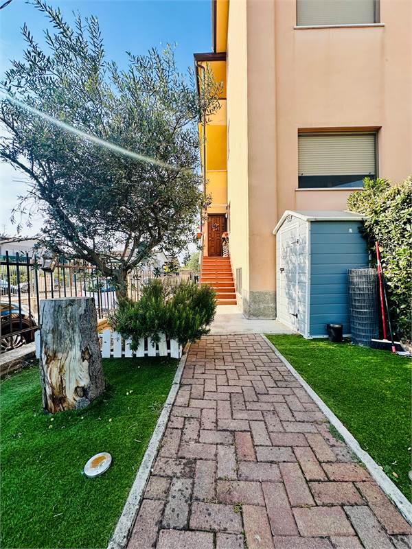 VILLAFRANCA: In piacevole complesso condominiale, non trafficato ed al contempo vicinissimo al centro storico, proponiamo appartamento al piano terra recentemente ristrutturato con ingresso indipendente e GIARDINO PRIVATO, così composto: ingresso con AMPIA ZONA GIORNO con angolo cottura, con affaccio su un terrazzo presente sul retro, disimpegno, camera singola, camera matrimoniale, bagno.