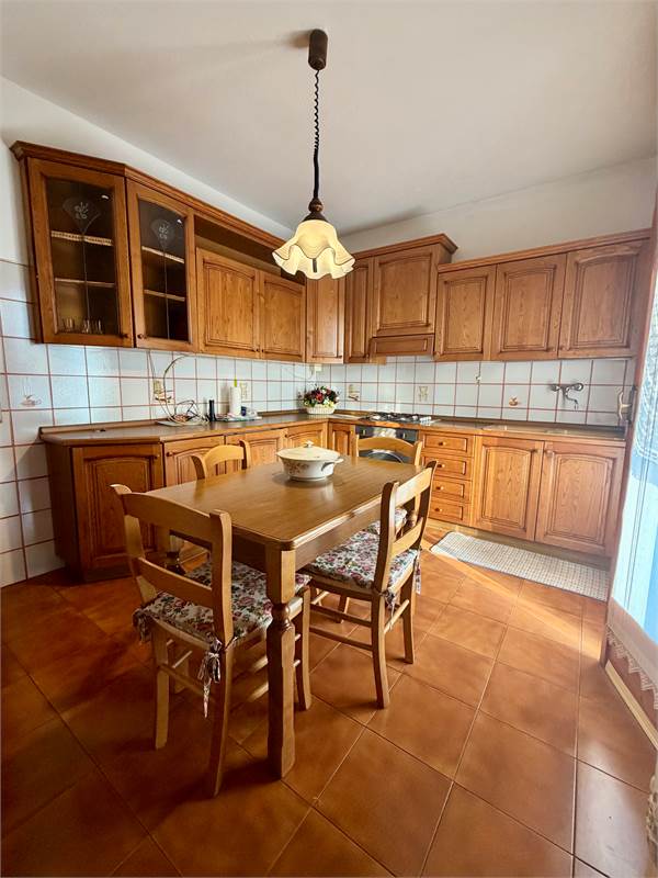 Proseguendo troviamo una cucina abitabile separata, tre camere da letto (due matrimoniali e una singola) e un bagno.