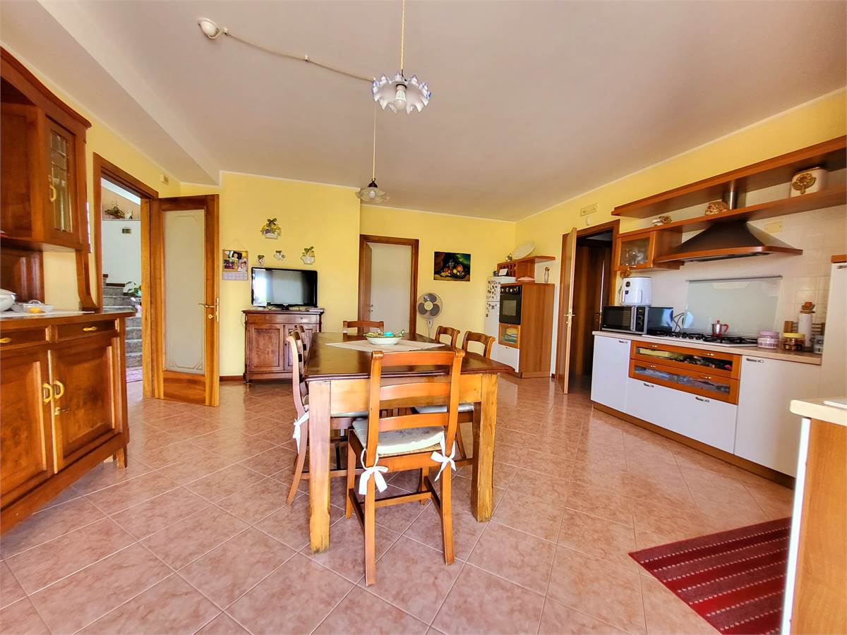 La proprietà si sviluppa su due livelli oltre il piano scantinato ed è così composta: ingresso con ampia cucina abitabile con affaccio su un terrazzo abitabile di oltre 100 mq, soggiorno, bagno finestrato e camera matrimoniale di 24 mq al piano terra.