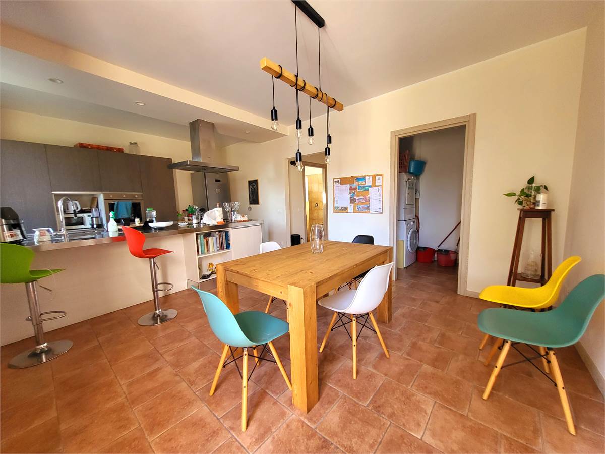 L'abitazione ci accoglie al piano terra con un soggiorno, cucina abitabile spaziosissima di 25 mq, un bagno finestrato con doccia, ed una dispensa/lavanderia; al piano primo tre camere da letto TUTTE DIMENSIONI MATRIMONIALI, un bagno finestrato e due balconi.